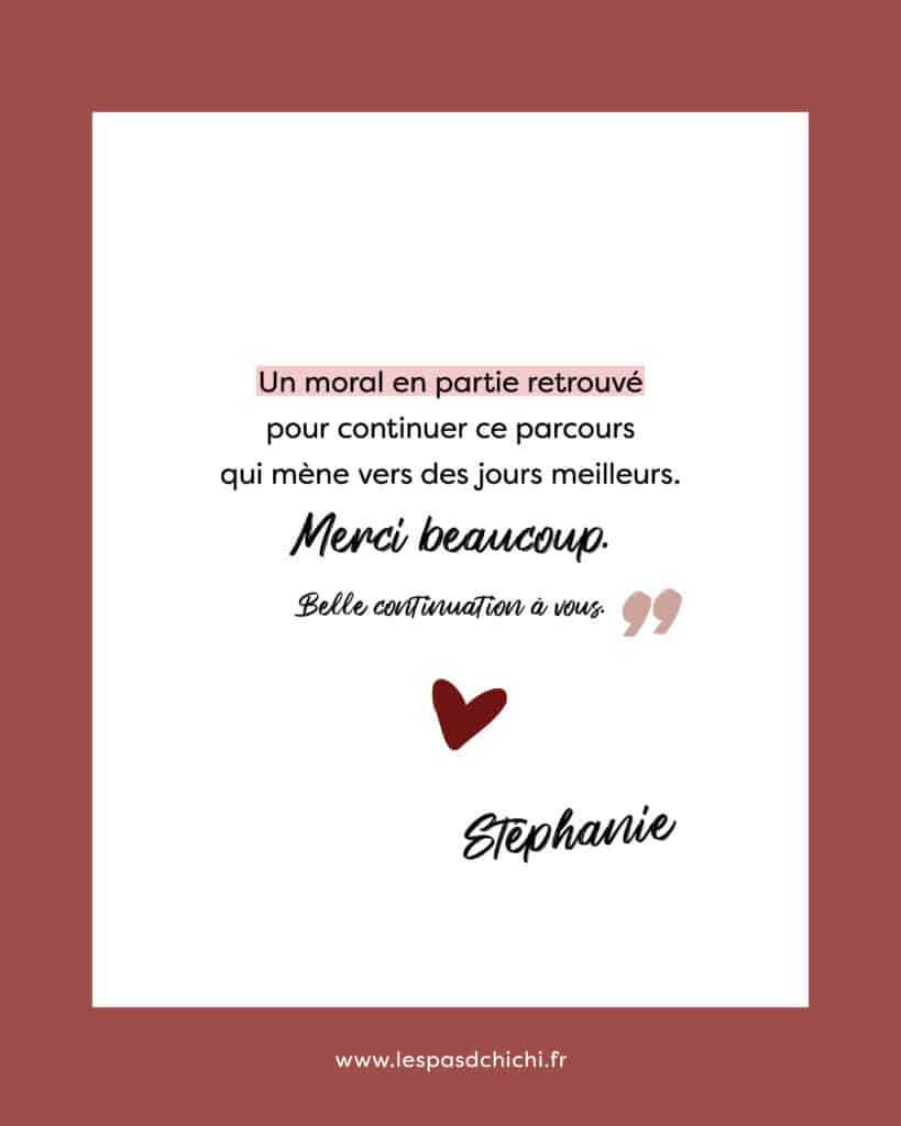 Nous remercions Stéphanie pour ses mots, sa confiance et son autorisation de partager son expérience.